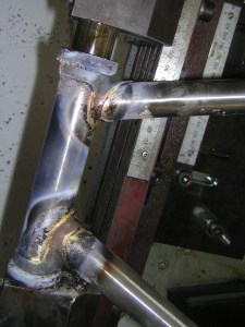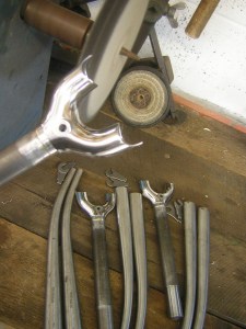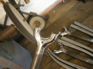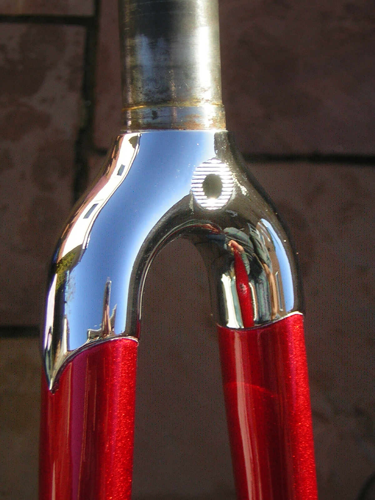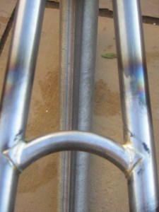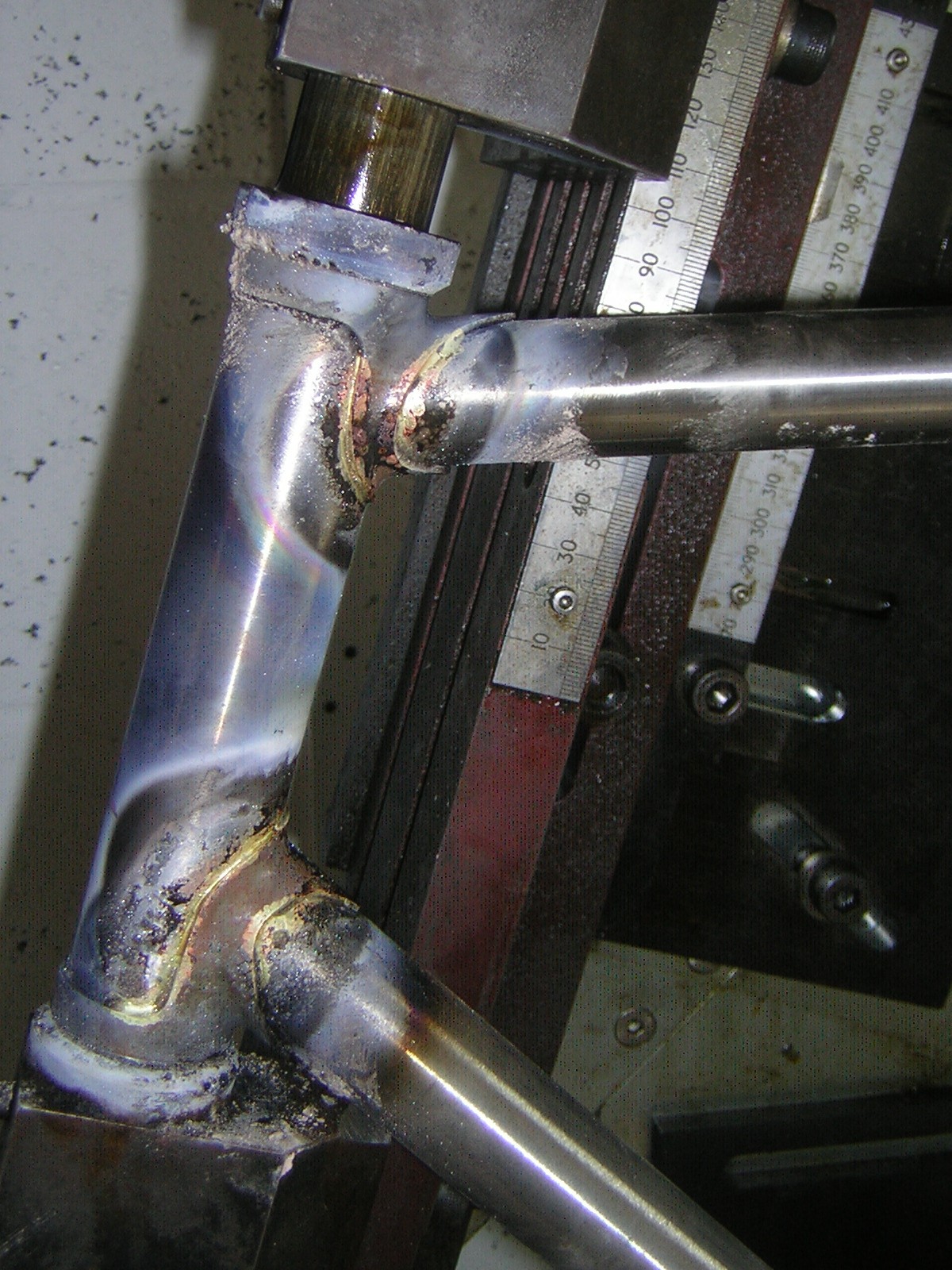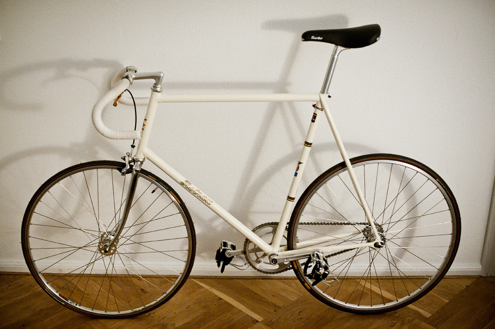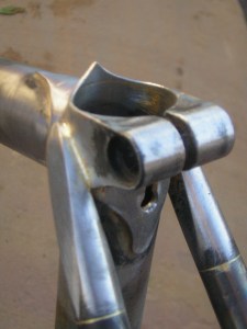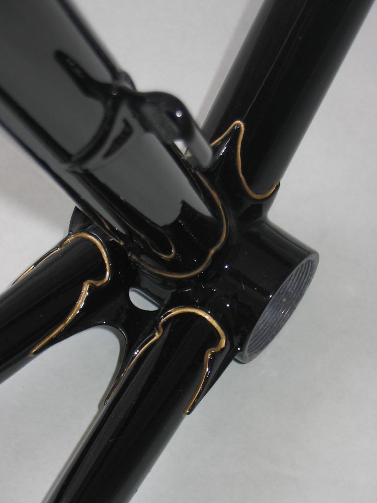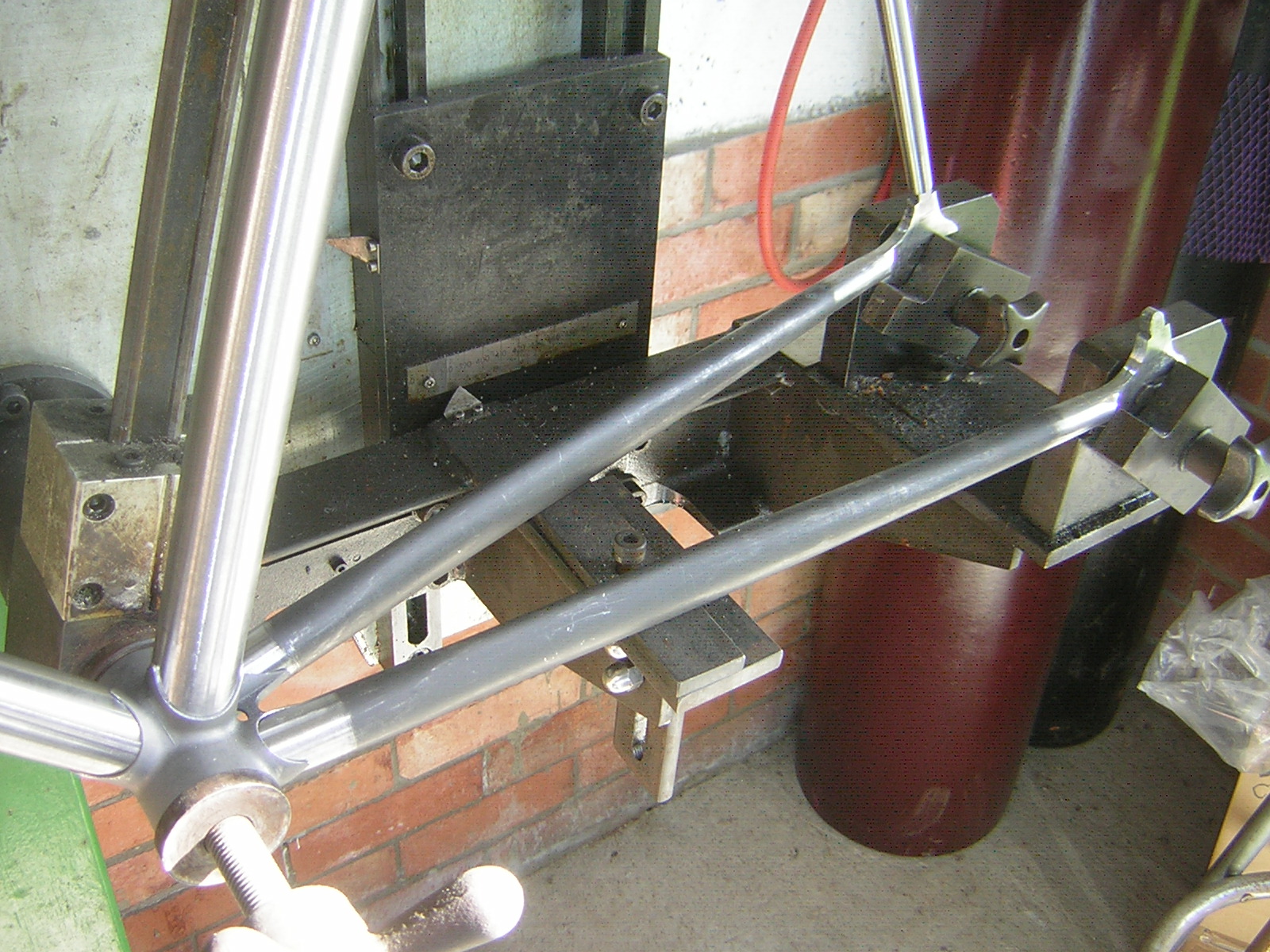 Frameset size 53cm centres, tubing lightweight heat treated steel double butted Reynolds 853 Tour, brazed construction, microcast steel lugs for extra stiffness.